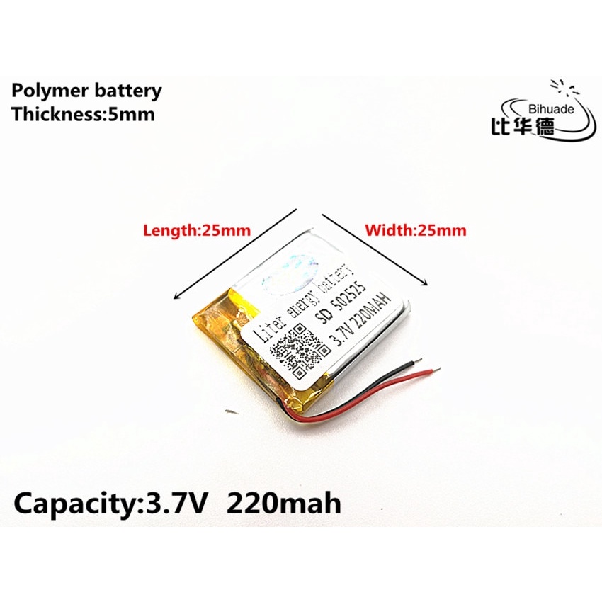 Bateria 220 Mah 3,7 V 5mm X 25mm X 25mm 502525 2 Fios *
