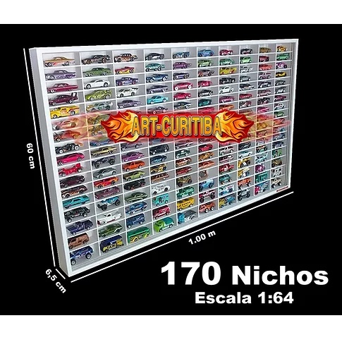 Estante Expositor 120 Nichos 1.00 x 50 x 6.5 Escala 1:64 Coleção Miniaturas Hot
