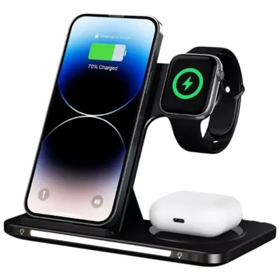 Carregador por Indução Sem Fio 3 Em 1 Dock Station P/ Apple Watch AirpodS iPhone Samsung KaiDi