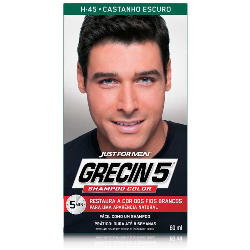 Kit 3x unidades Grecin 5 Shampoo Tintura Tonalizante Castanho Escuro H-45 60ml - Cobre os cabelos grisalhos em 5 minutos