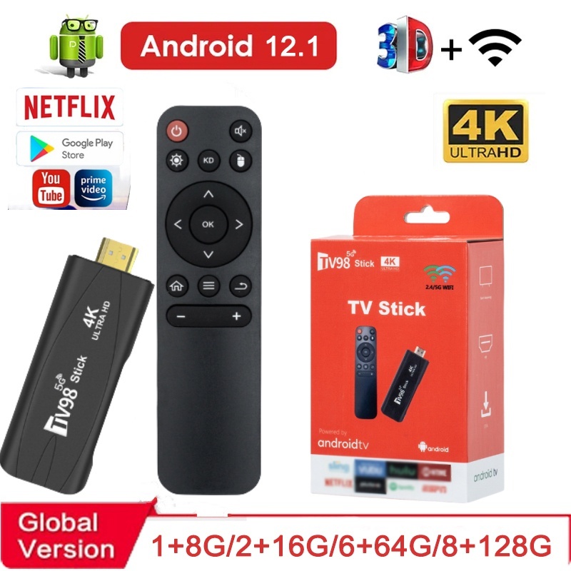 Global 4K TV Stick e Android 12.1 Smart TV98 Media Dual 2.4G 5G Wifi 8GB 128GB 4K HD