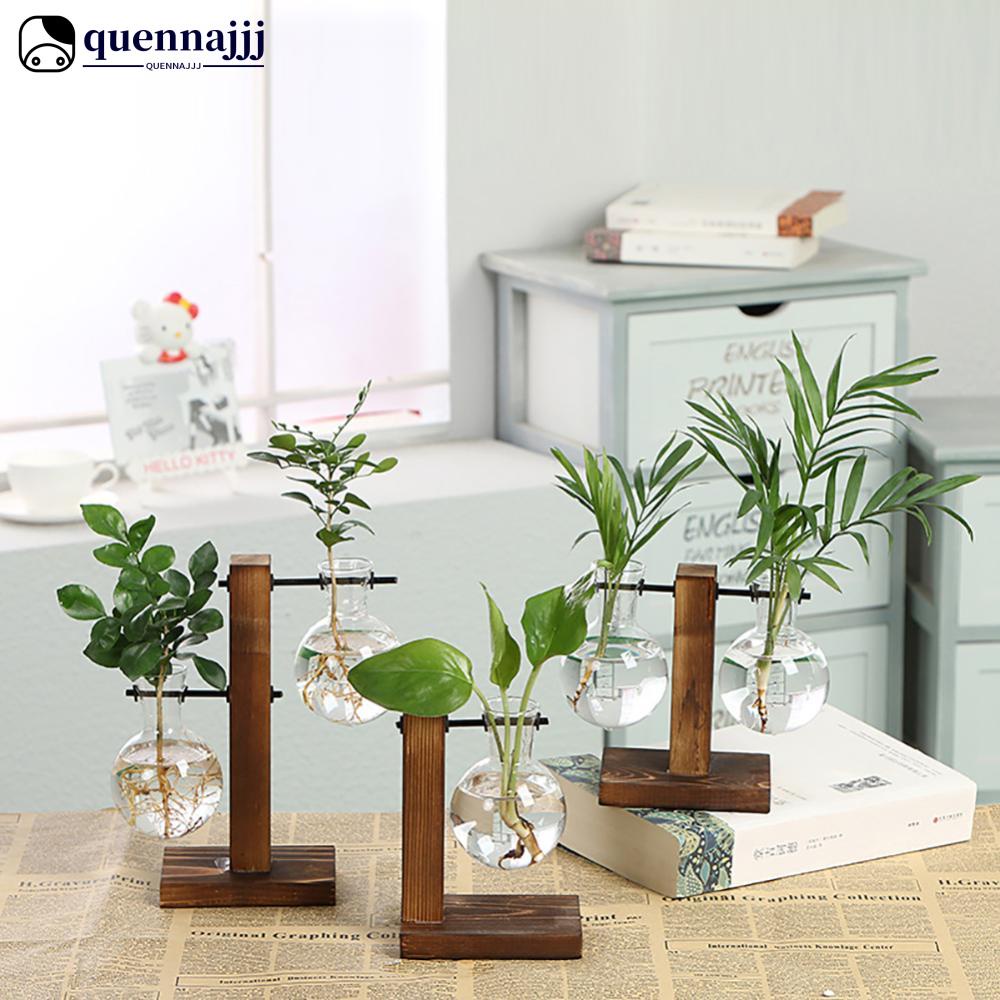 QUENNA Terrarium Vasos Hidropônicos Para Plantas Hidropônicas Vintage Flower Vaso Transparente De Madeira Moldura De Vidro De Mesa Bonsai Decor R1Z7