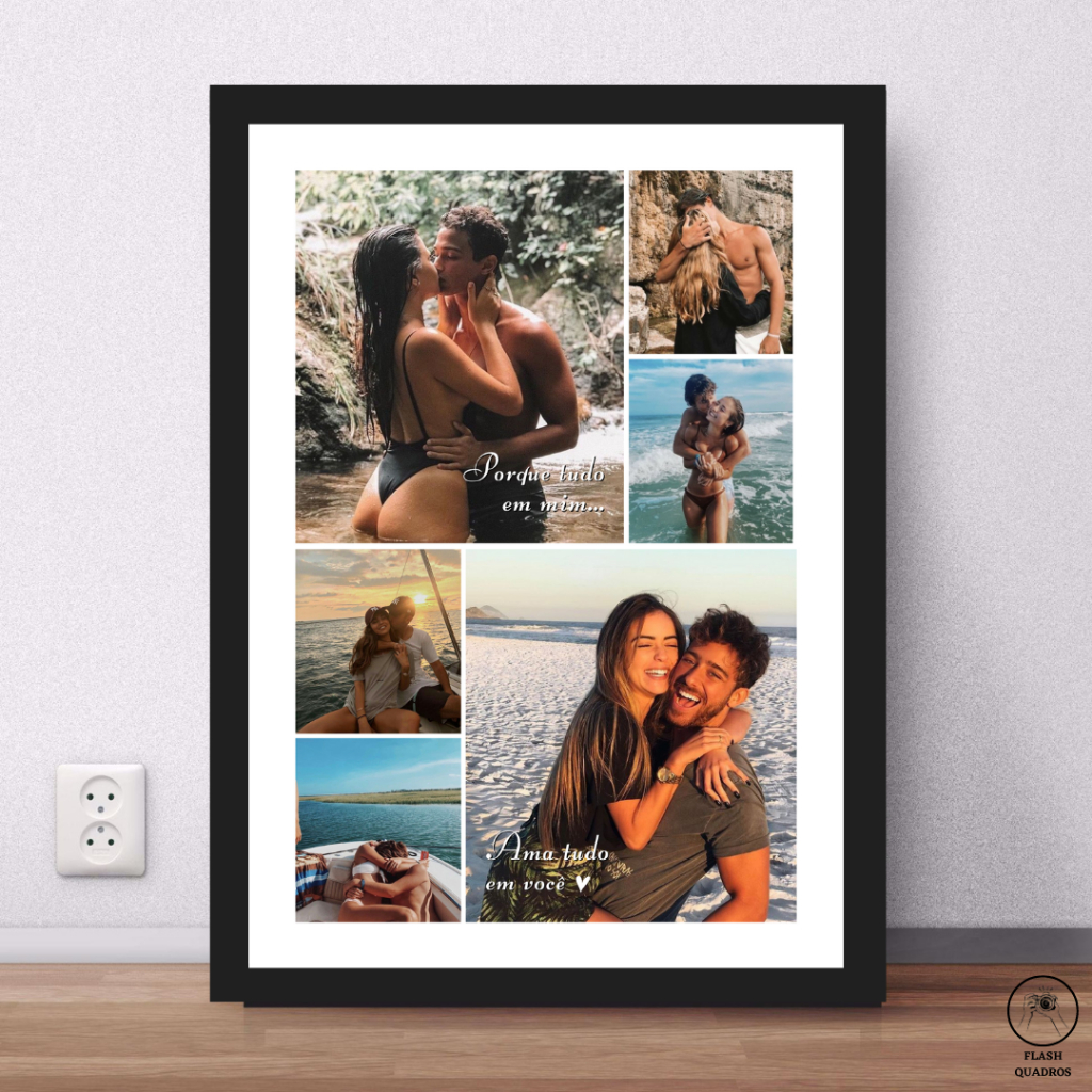 Quadro Personalizado com 13 fotos de Casal para Dia dos Namorados Tamanho A4 Com Moldura e acetato