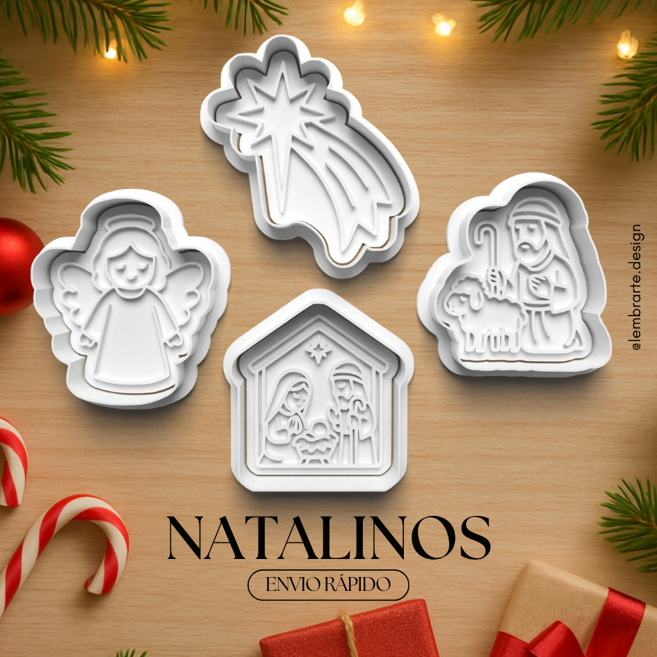 🎄 Kit 4 Cortadores e Carimbos Natal - Moldes para Biscoitos, Confeitaria, Pasta Americana, Biscuit 🍪