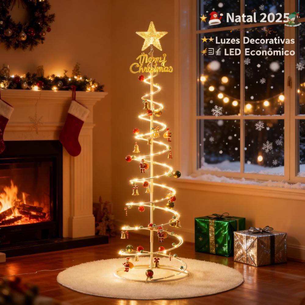 🎄 Árvore de Natal LED 1,8m Dobrável – Montagem Rápida, Luzes Brilhantes e Enfeites Inclusos N10