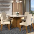 Conjunto Mesa de Jantar Versatil com 6 Cadeiras Viero Móveis Pinho/Bege
