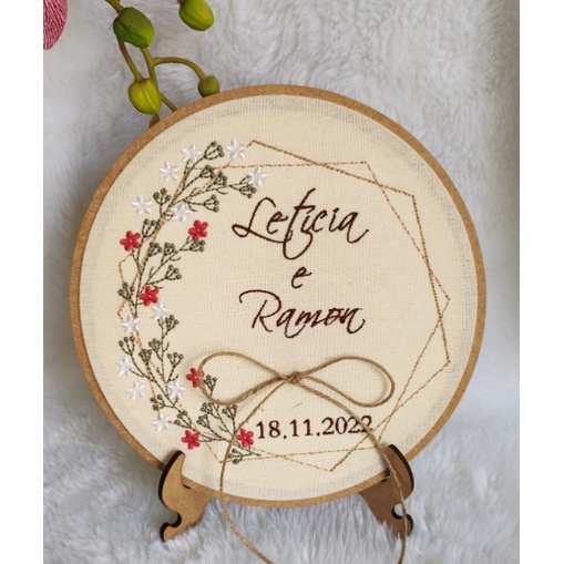 Bastidor Bordado personalizado 25cm, porta maternidade, porta aliança, quadro.