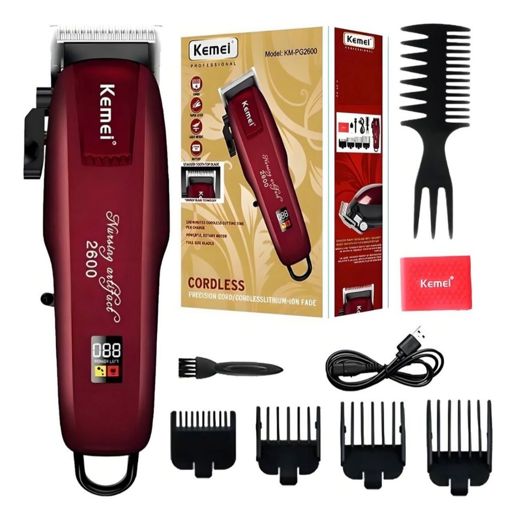 Máquina de Cortar Cabelo Profissional sem fio recarregável Kemei original cordless Km 2600 - bivolt 110v/220v