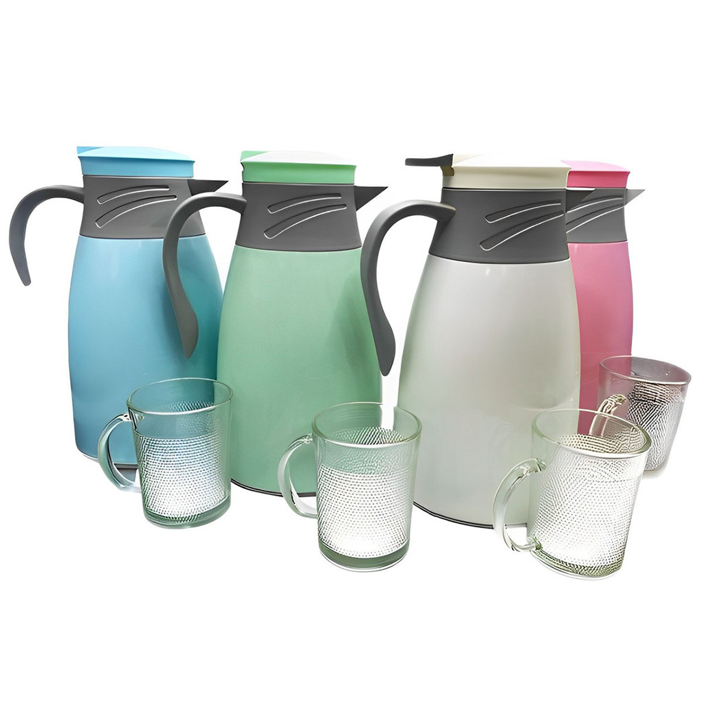 Kit Garrafa Térmica Café 1 Litro Colorida Mais 4 Canecas de Vidro