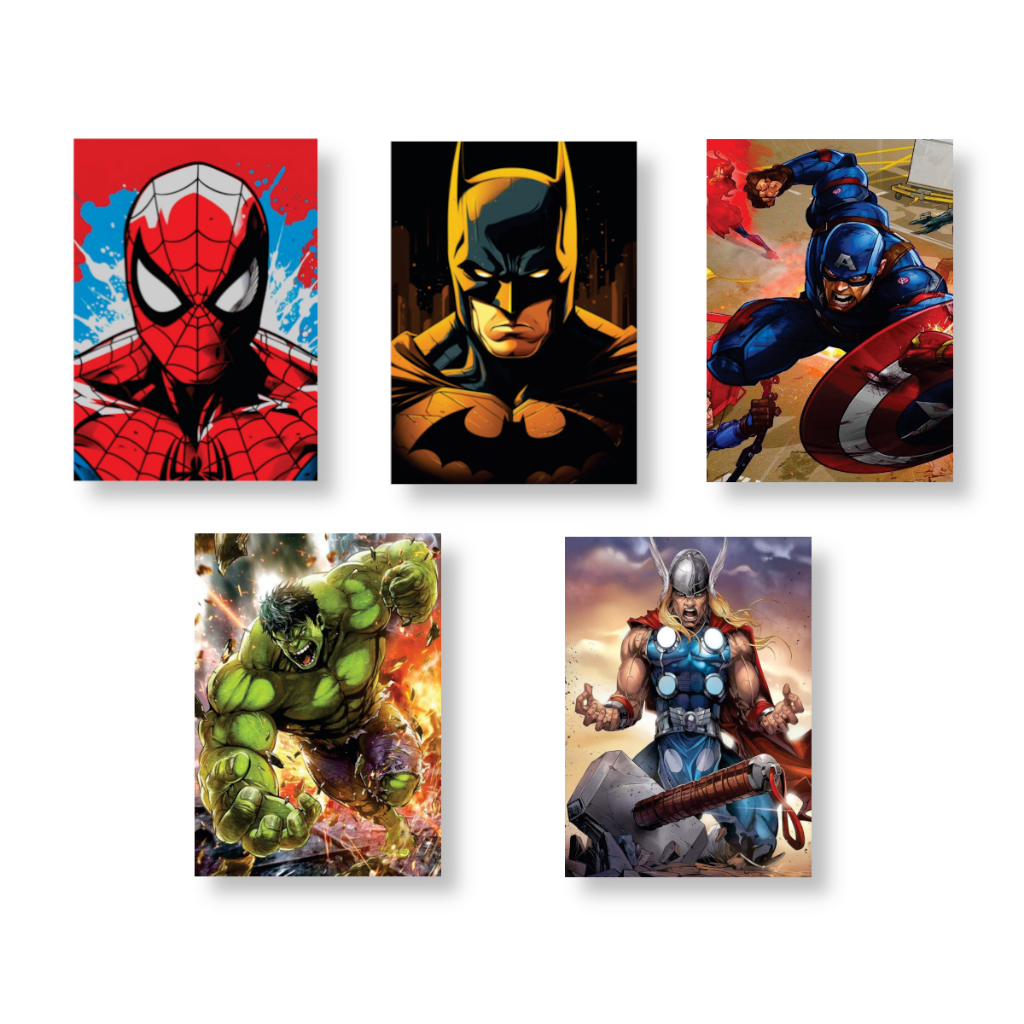 Kit de Quadros Decorativos 5 partes Marvel Heróis Placa Decorativa Mdf Quarto Filme