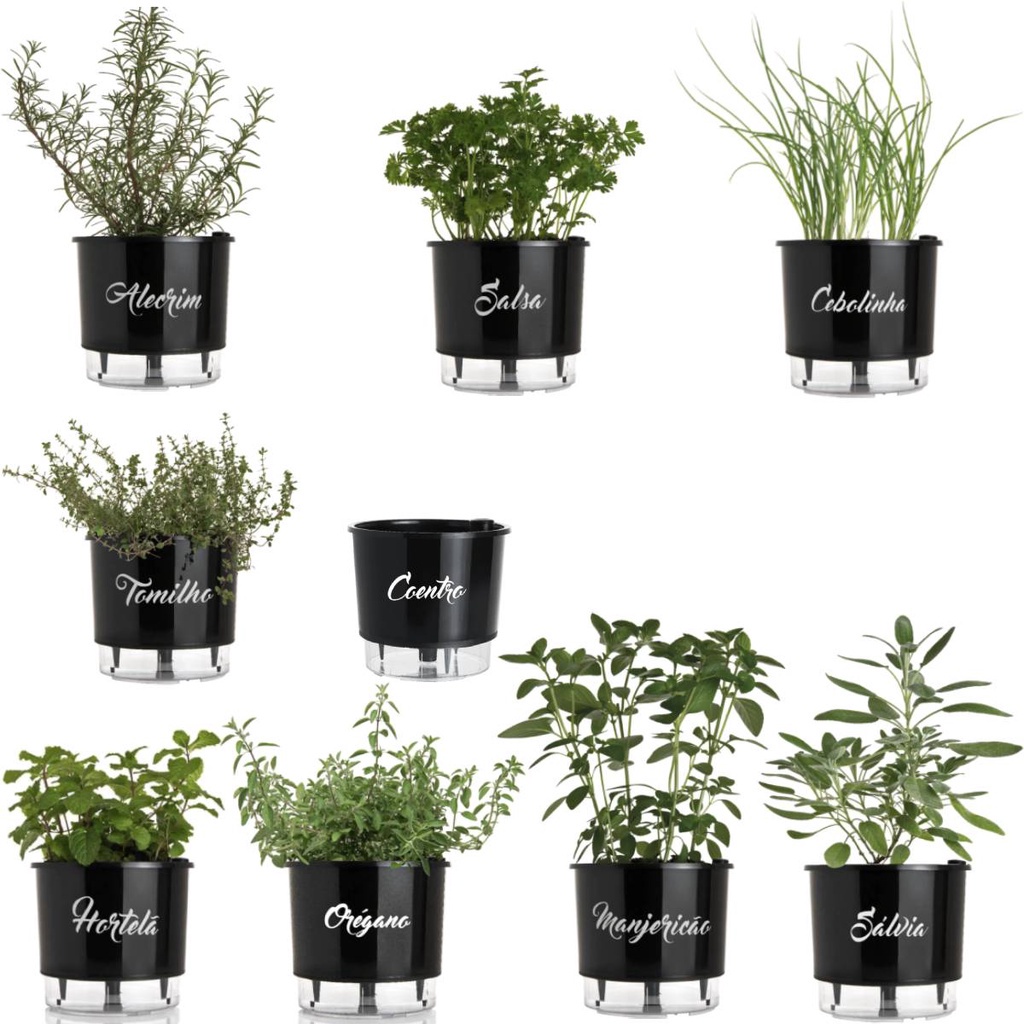 Kit 9 Vaso Autoirrigável Médio Temperos Gourmet Horta Planta