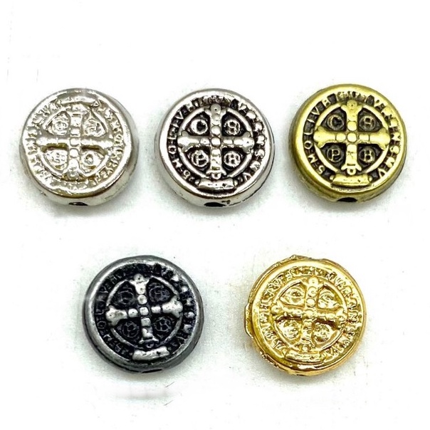 Medalha Passante - São Bento ("Pct c/10 Pçs") - P/ fabricar terços pulseiras e outros 1cm X 1cm