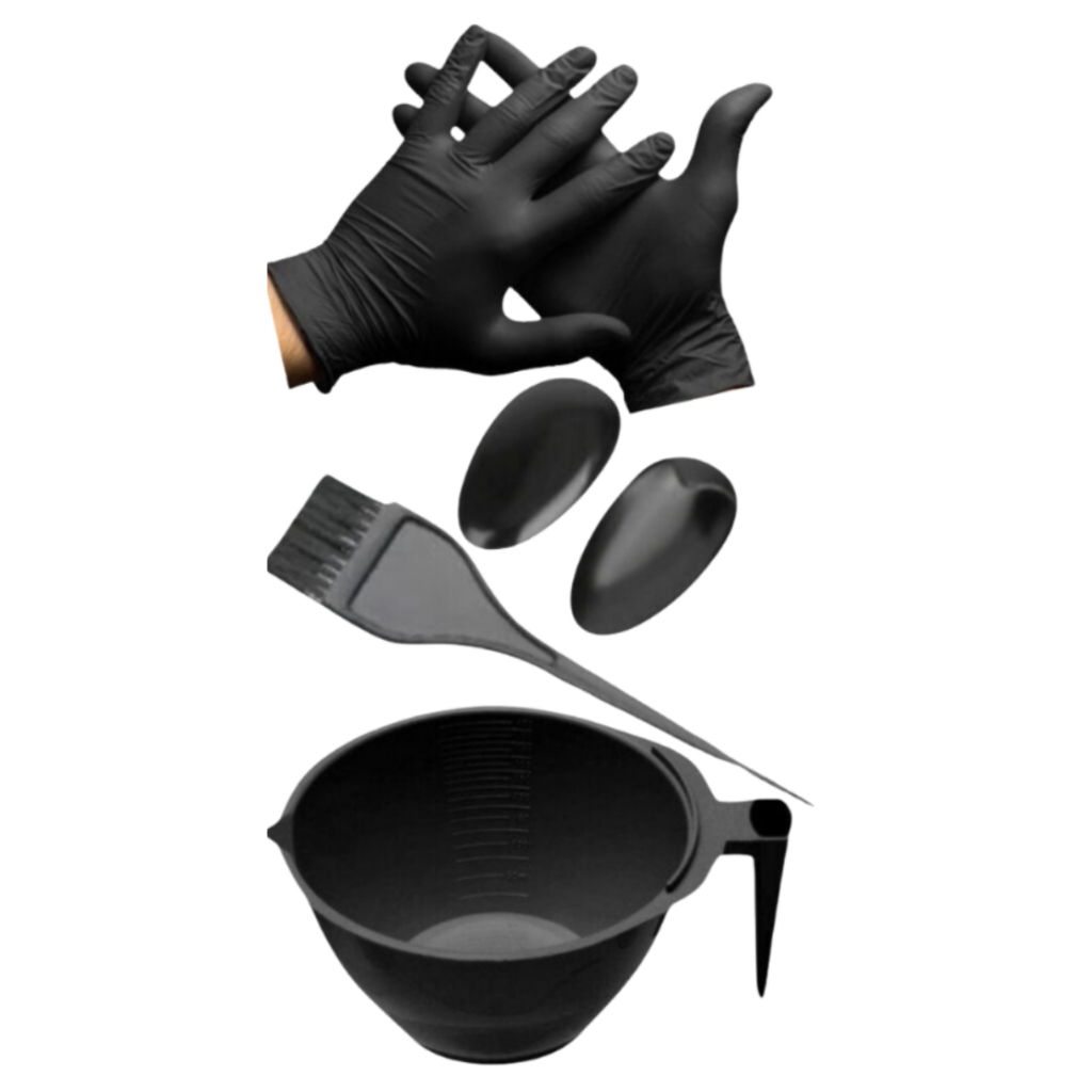 Kit de Cumbuca, Pincel, Luvas e Protetor de Orelhas para Aplicar Tintura Capilar, Escova Progressiva e outros cosméticos.