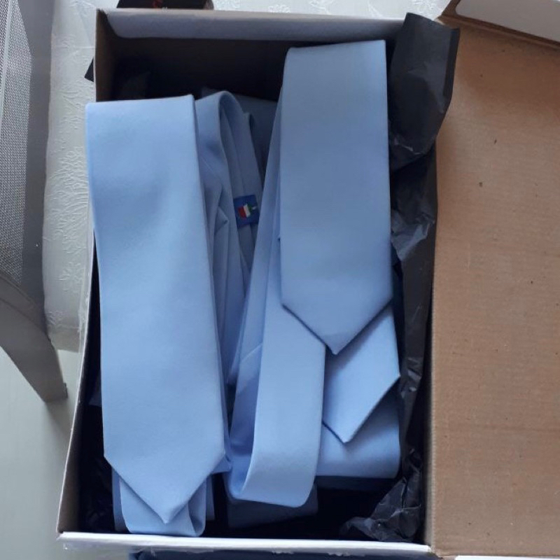 Kit 4 Gravata Azul Serenity Slim Cetim Padrinho Casamento