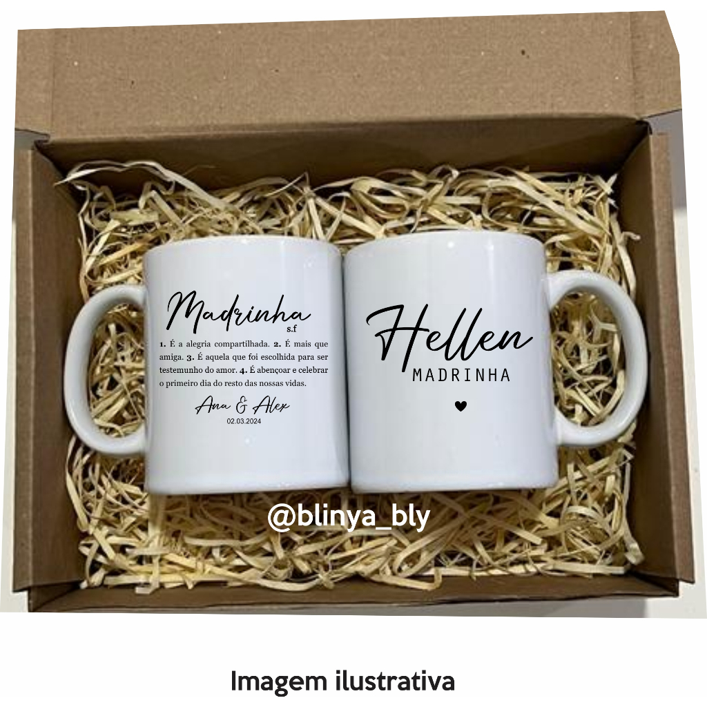 Kit 2 canecas de cerâmica Madrinha Padrinho Personalizada com Nome Lembrança de Casamento Noiva Noivo