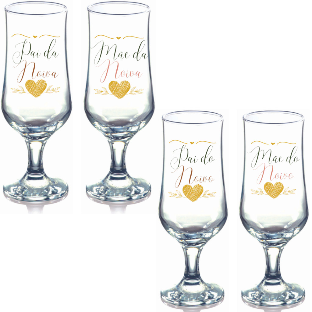 Kit 4 Taças Personalizada Pai Mãe da Noiva Mãe do Noivo Presente Casamento Madrinha Padrinho