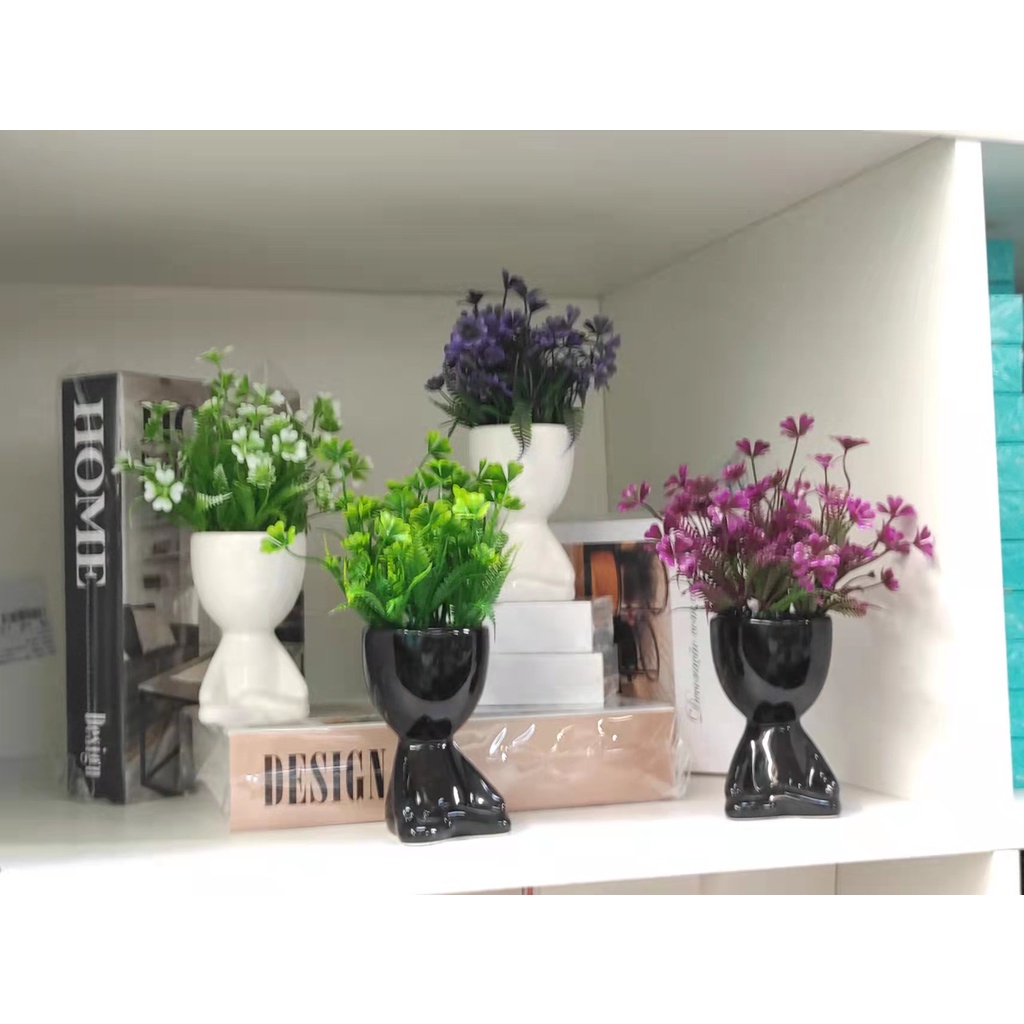 kit 3 Vaso Mini planta Artificial Folhagem Vasinho Arranjo Plantinha Planta Decorativo Quadrado Branco