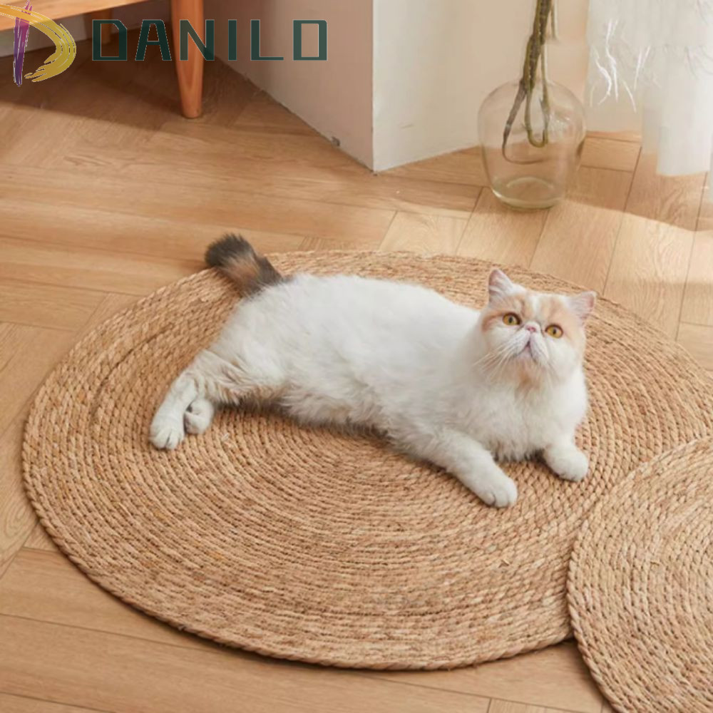 DANILO Kitten Raspador De Gato , Tábua De Raspagem Natural Resistente Ao Desgaste , Colchão Rattan Tecido À Mão Redondo De Garra Home