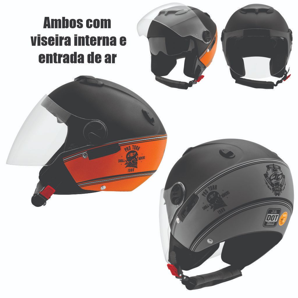 Capacete Moto Aberto Pro Tork New Atomic Skull Riders Hd Viseira Cristal e Sub-viseira Fumê