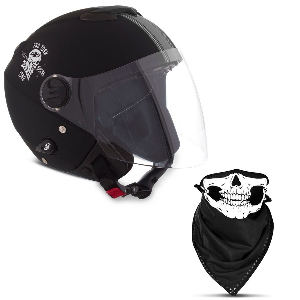 Capacete Moto Aberto Pro Tork New Atomic Skull Riders Com Bandana
