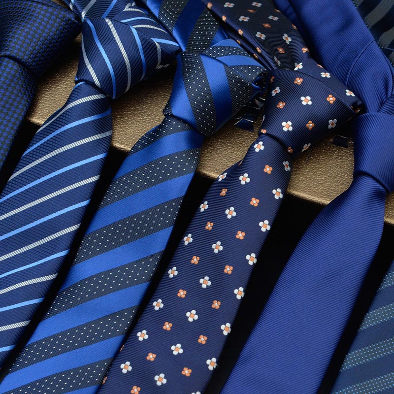 Gravata Masculina De Luxo Listrada Gravatas 8CM Jacquard Tecido Listrado Festa De Casamento Negócios Azul Pescoço