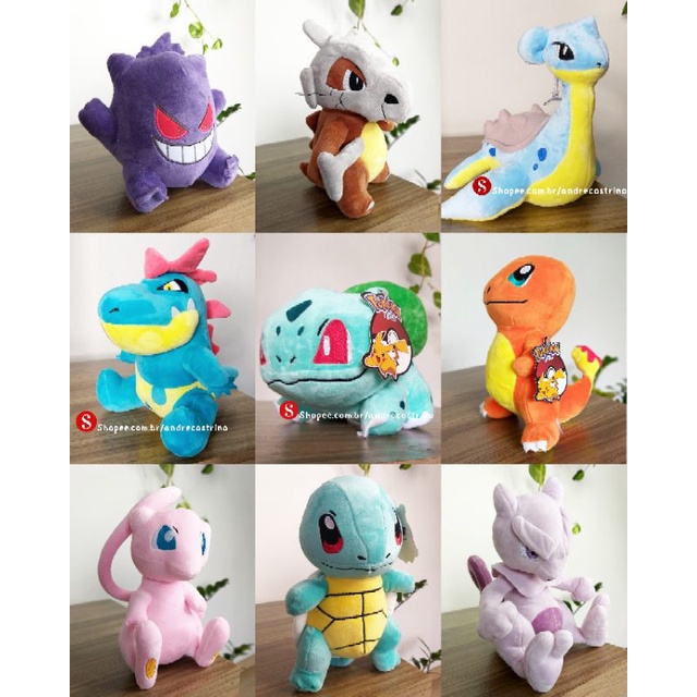 Boneco Bicho Pelúcia Pokémon diversos modelos. Excelente presente para datas especiais Dia dos Namorados, Natal, Dia das Crianças, Aniversários, Colecionadores e Fãs. Linda, descontraída e divertida decoração para o seu ambiente também. Pikachu, Squirtle