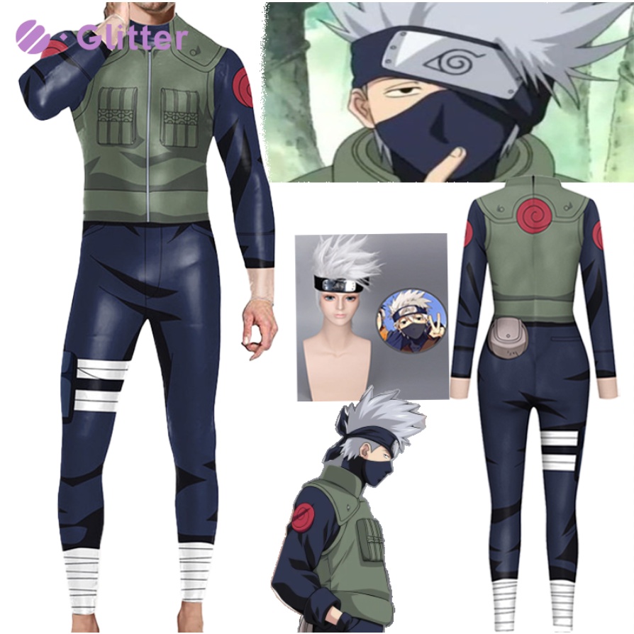 Filme Anime Naruto Kakashi Cosplay Fantasia Para Homens Adultos Fato De Manga Longa Salto Ninja Peruca Branca Prata Uniforme Mulheres Impressão Digital 3D Roupas De Festa De Natal