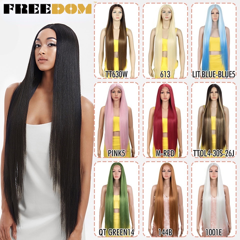 FREEDOM Peruca Frontal De Renda Sintética 38 Polegadas Es Deep Part Long Straight Ombre Cosplay Para Mulheres