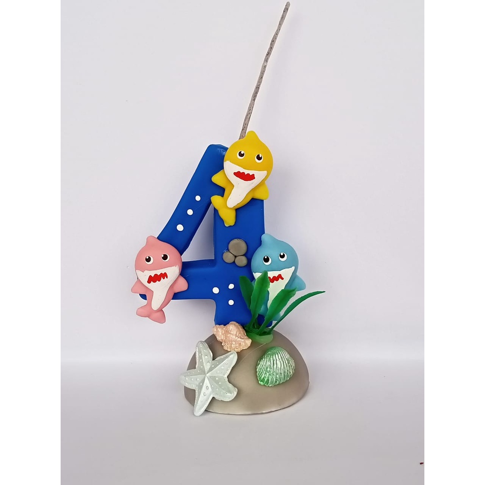 Vela de aniversário Baby Shark Menina Cenário biscuit 1 , 2 , 3 , 4 , 5 anos topo de bolo Cenário