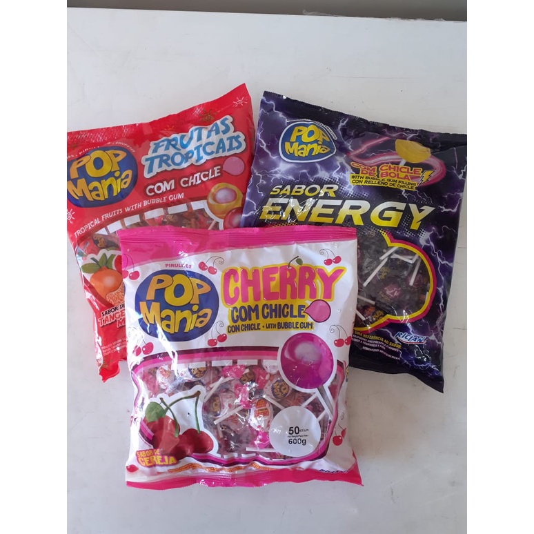 Pirulito Pop Mania com Recheio de Chicletes 50 unds - sabores