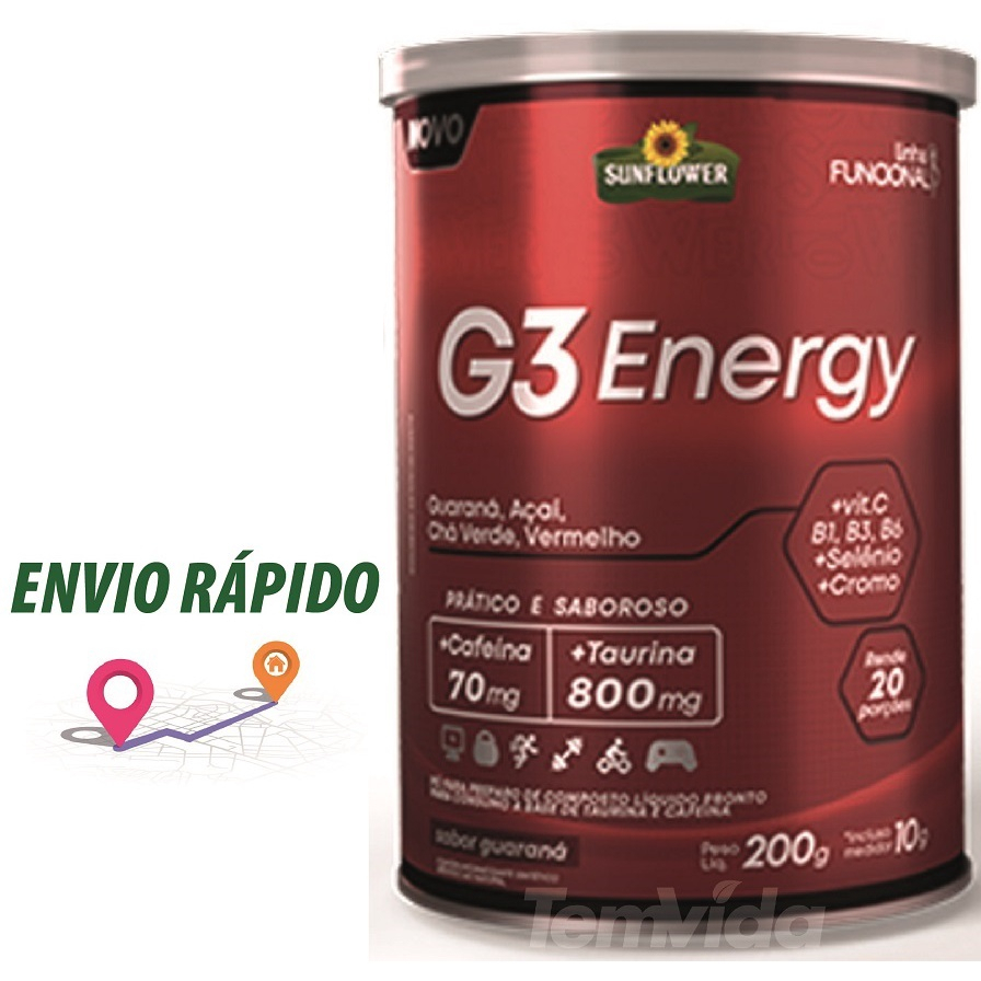 G3 Energy 200g Energético Açaí e Guaraná Taurina Cafeína Solúvel Sunflower