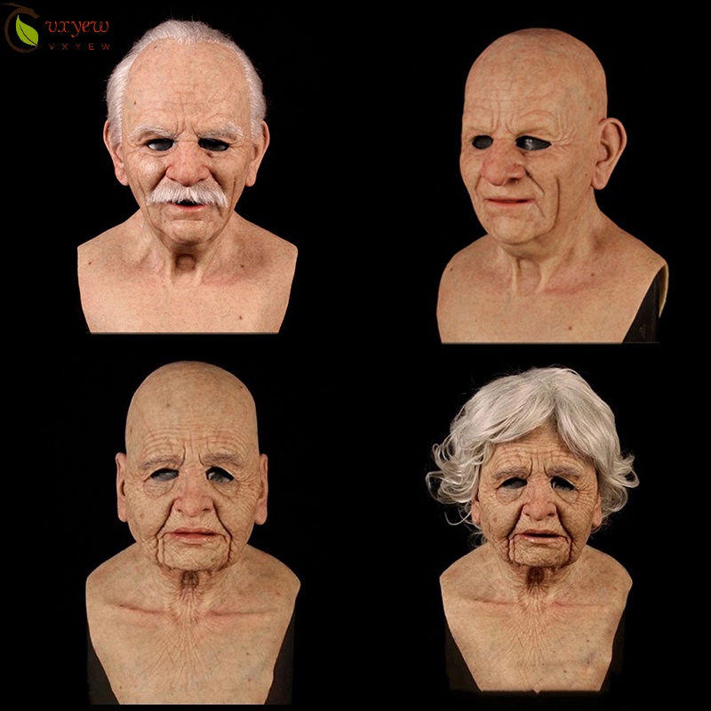 Cosplay Máscara De Borracha Para Homem Velho Capa Facial Realista Assustador Látex Horror Headgear Adulto Mulher Útil