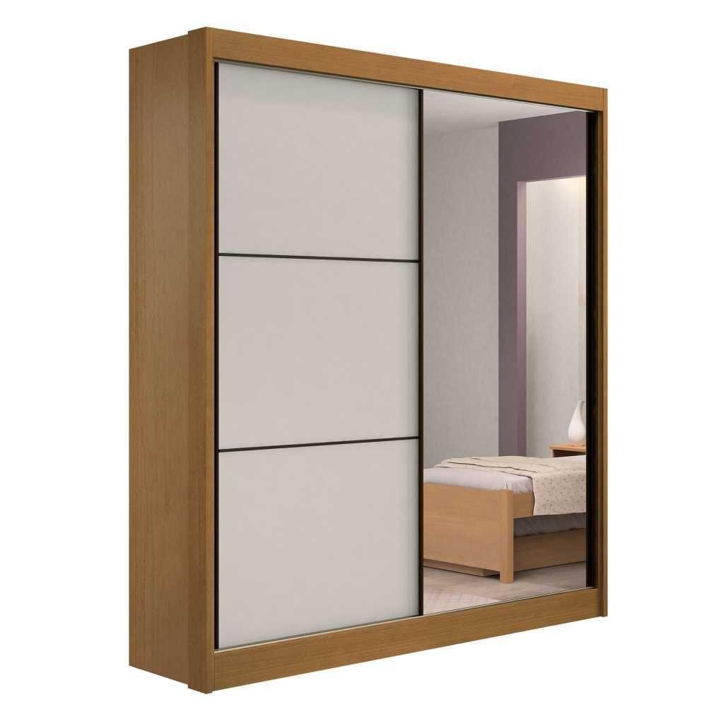 Guarda Roupa Solteiro com Espelho 2 Portas 3 Gavetas 100% Mdf Atenas Cor:cinamomo Off