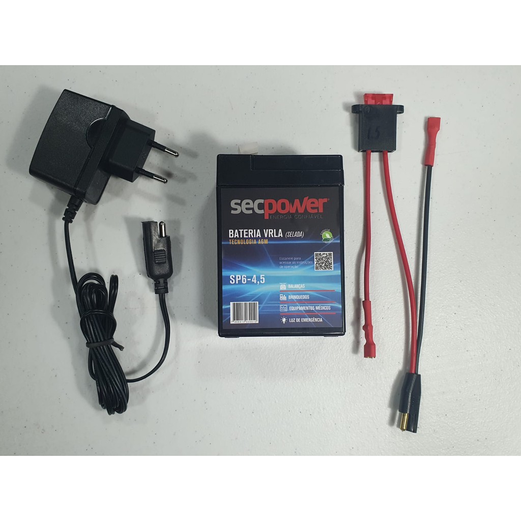 Kit Bateria 6v 4,5ah + Carregador Com Plug Bandeirante + Chicote De Ligação Para Brinquedos Bandeirantes , Carrinhos Eletricos E Motinhas Eletricas.
