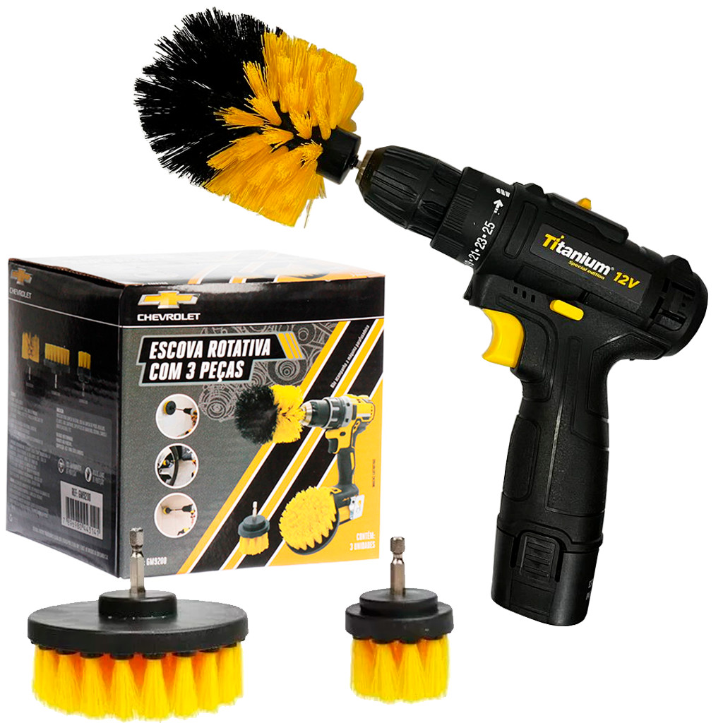 Kit Parafusadeira 12v Com Carregador E Bateria + Escovas Rotativas Para Limpeza 03 Peças