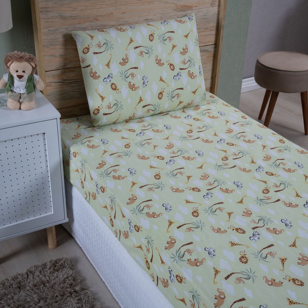 Jogo de Lençol Solteiro 2 Peças 100% Algodão Infantil Estampado Safari