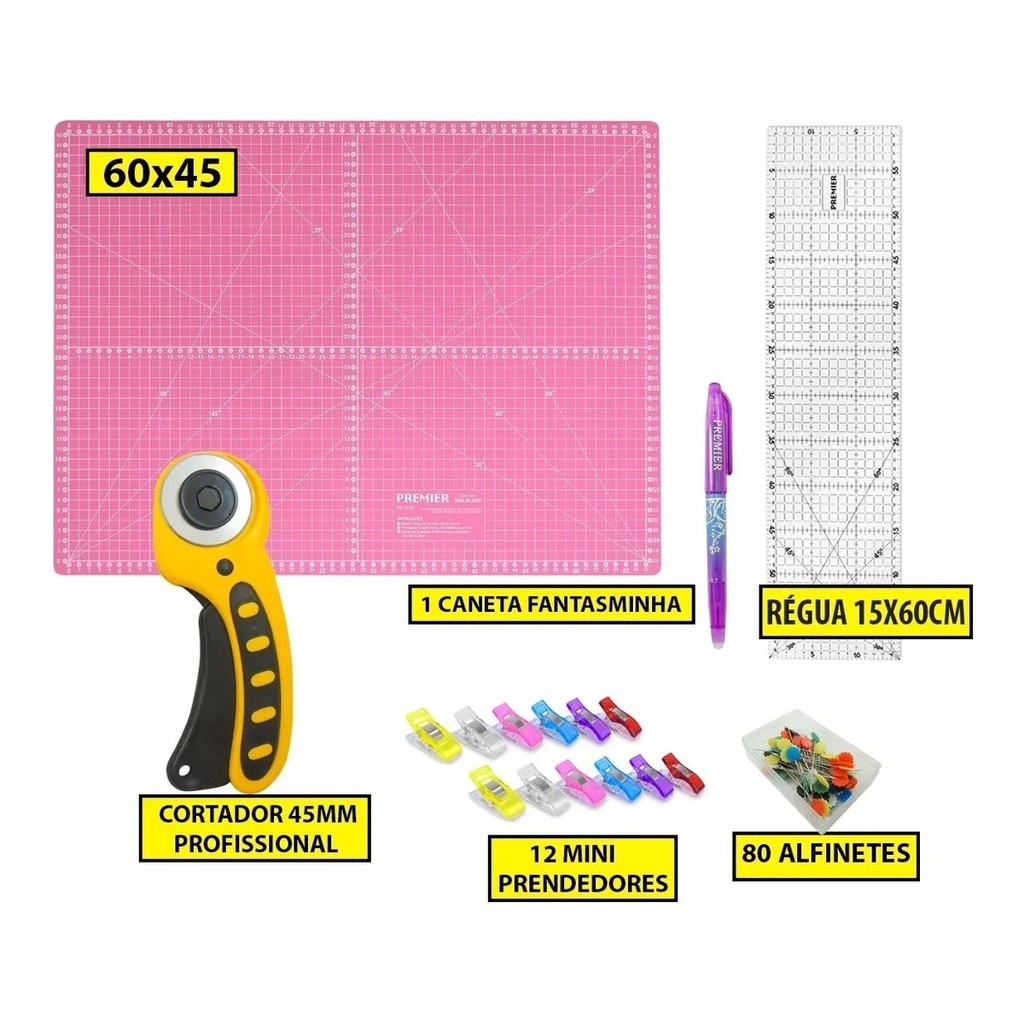 Base Tapete De Corte 60x45 Régua 15x60cm Cortador Patchwork