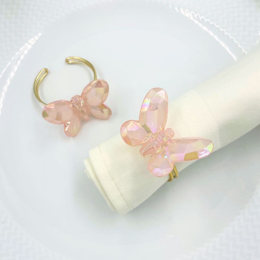 Kit com 06 ou 12 Anel de Guardanopo Borboleta Rosa Cristal