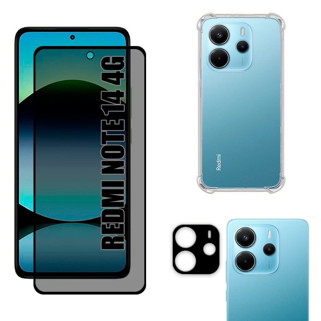 Kit Para Redmi Note 14 4G | Película de Privacidade 3D - Capa Anti Shock - Película da Câmera 3D