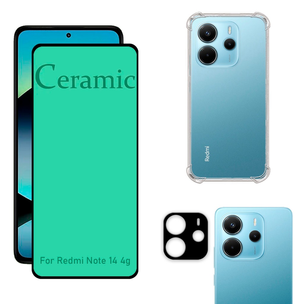 Kit Para Redmi Note 14 4G | Película de Cerâmica - Capa Anti Shock - Película da Câmera 3D