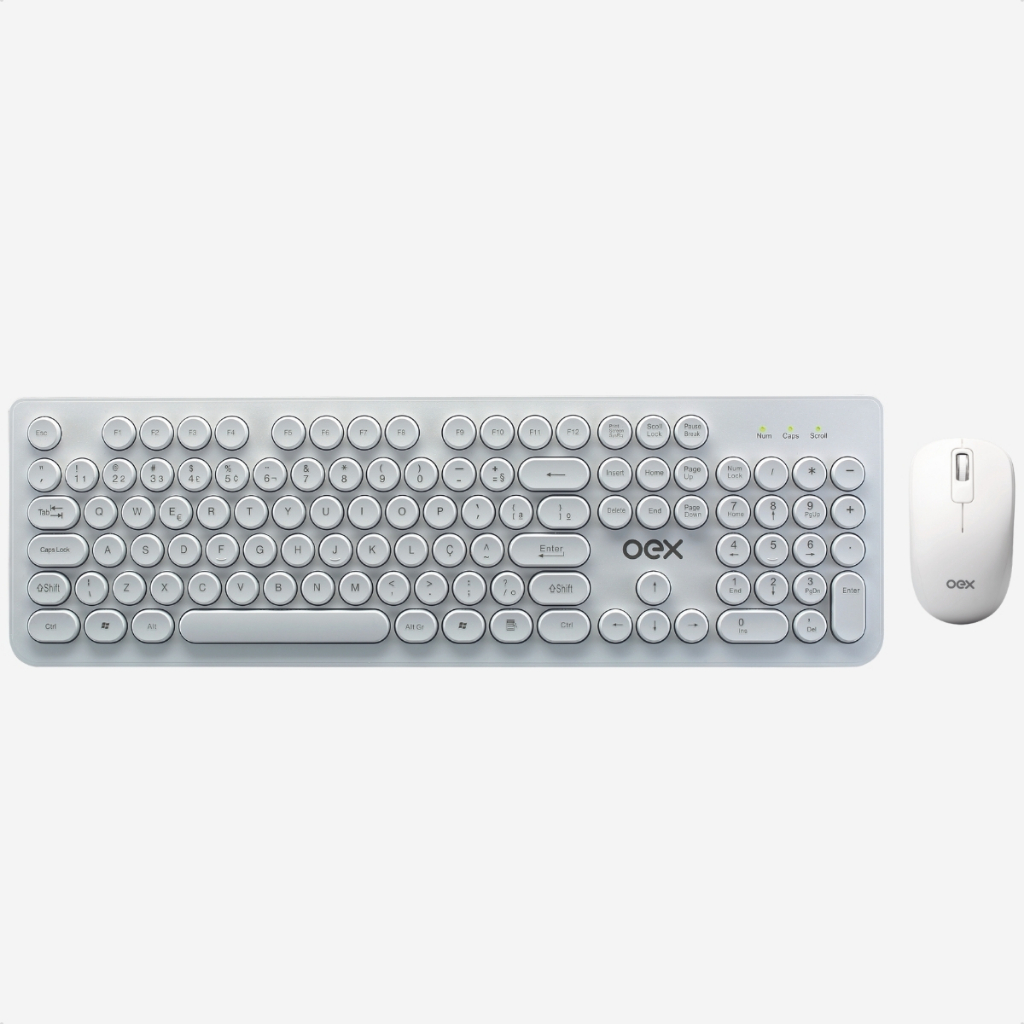 Kit Teclado e Mouse Pop Sem Fio Oex TM410 1600 DPI Branco