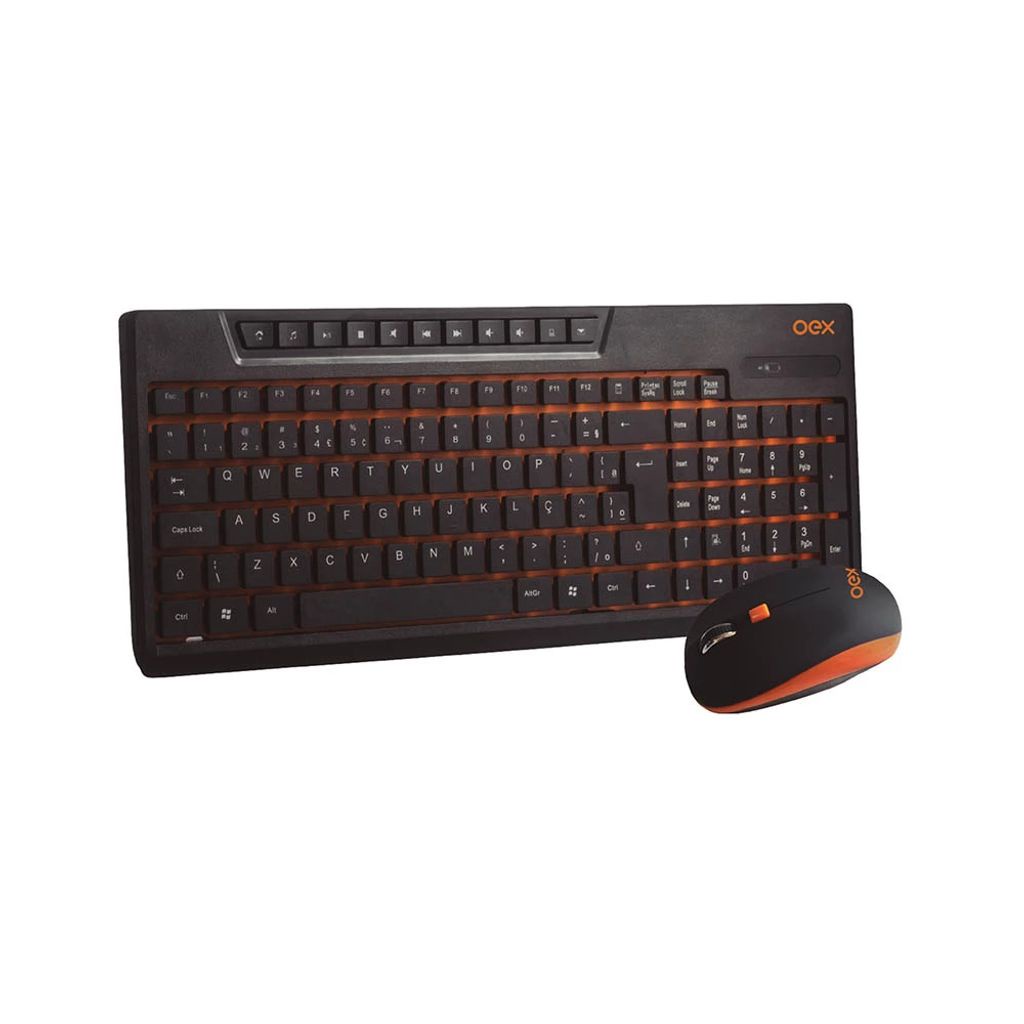 Kit Teclado e Mouse OEX sem Fio Preto e Laranja TM402