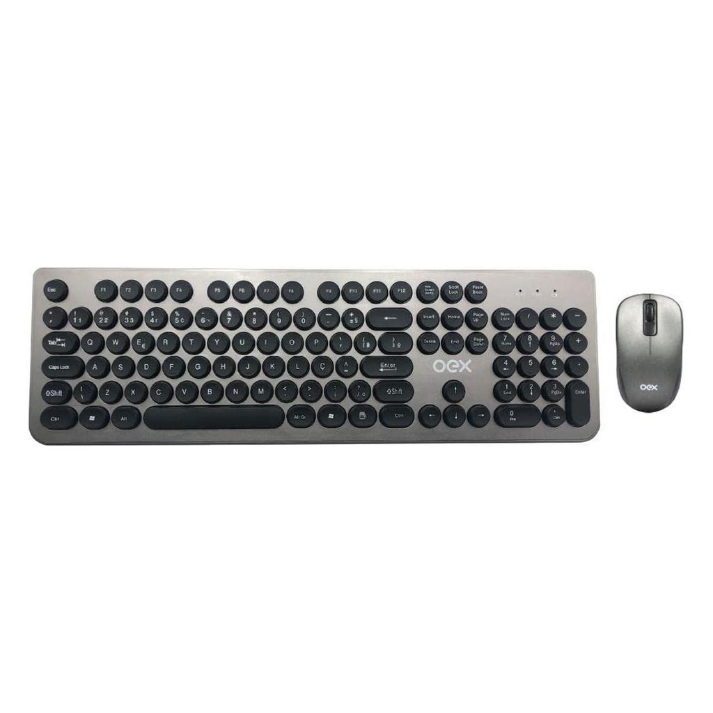 Kit Teclado e Mouse sem Fio Oex, 1600 DPI, Teclas Redondas, Chumbo POP - TM410.