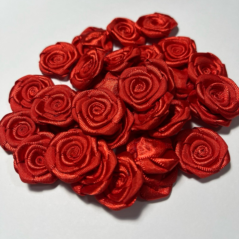 Flor de Rococó vermelho mini rosa de cetim 2 cm (30 unidades)