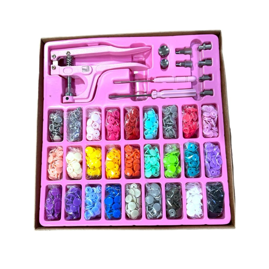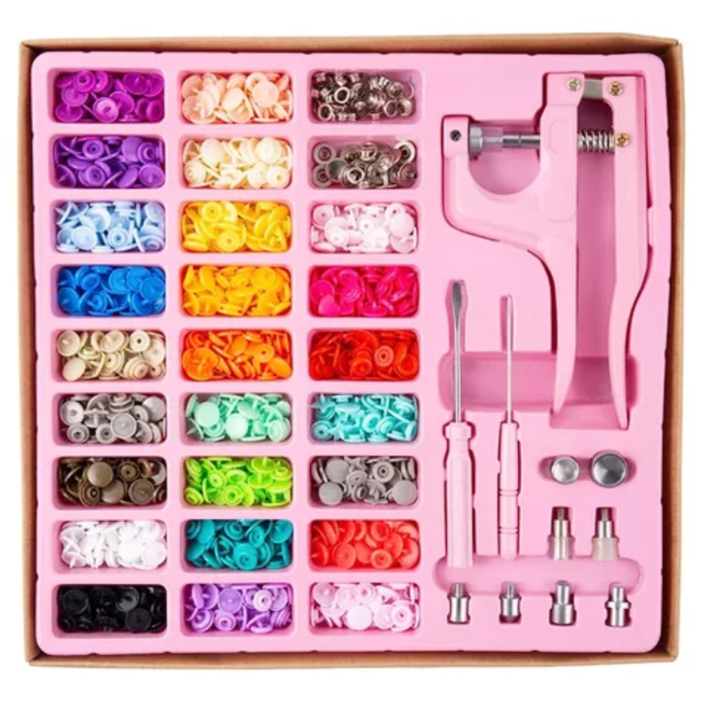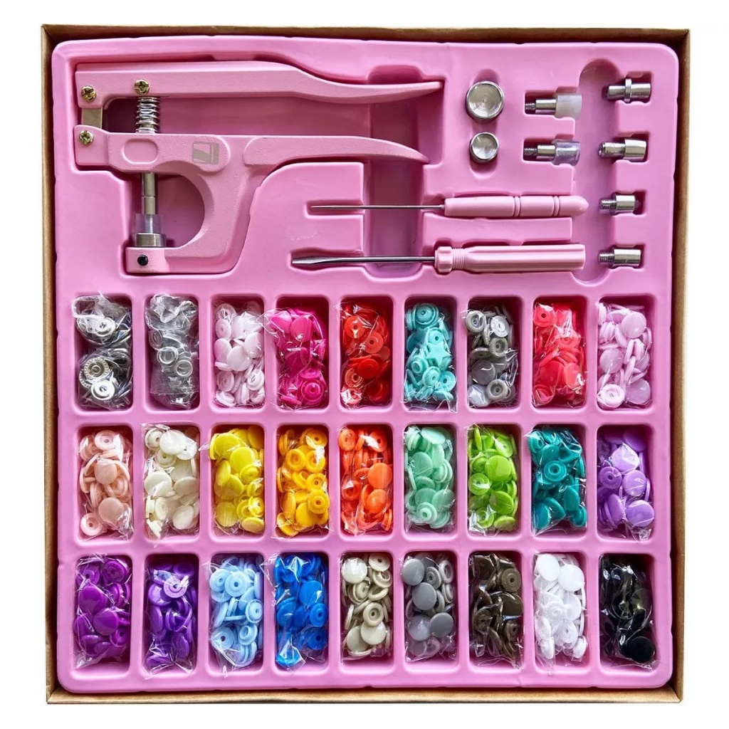 Kit Alicate de Pressão 3 em 1 Lanmax Rosa Aplicador de Botão colorido - Alicate + Botões Plástico e Metal + Ilhós - Patchworks / Artesanato / Scrap / Custom