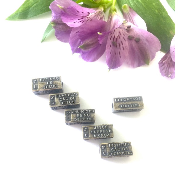 30 Passantes Flor de Metal para Terço e Pulseiras Ouro Velho - Passante Florzinha para Pulseiras