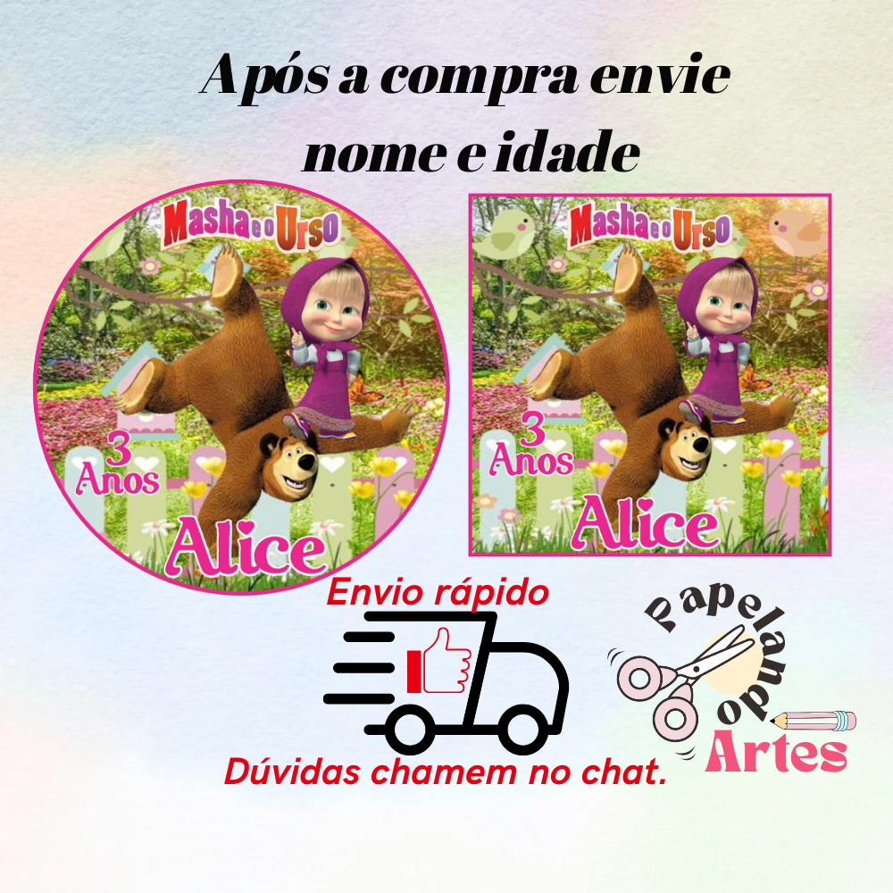 40/60/100 Adesivos Masha e o Urso Personalizados Para Festa 5x5 S/Recorte (Envio rápido)