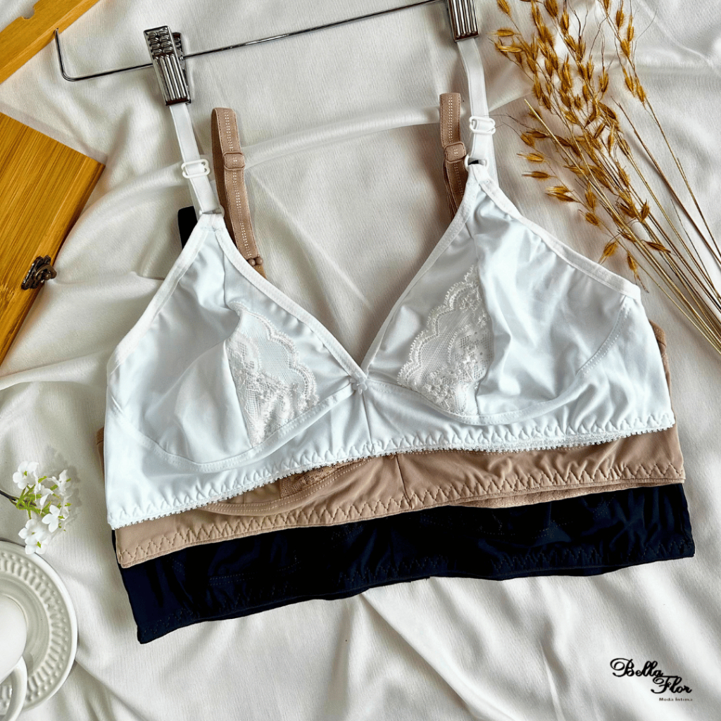 Kit com 3 Sutiãs Básico Cores Neutras Barato Detalhe em Renda Forma Grande