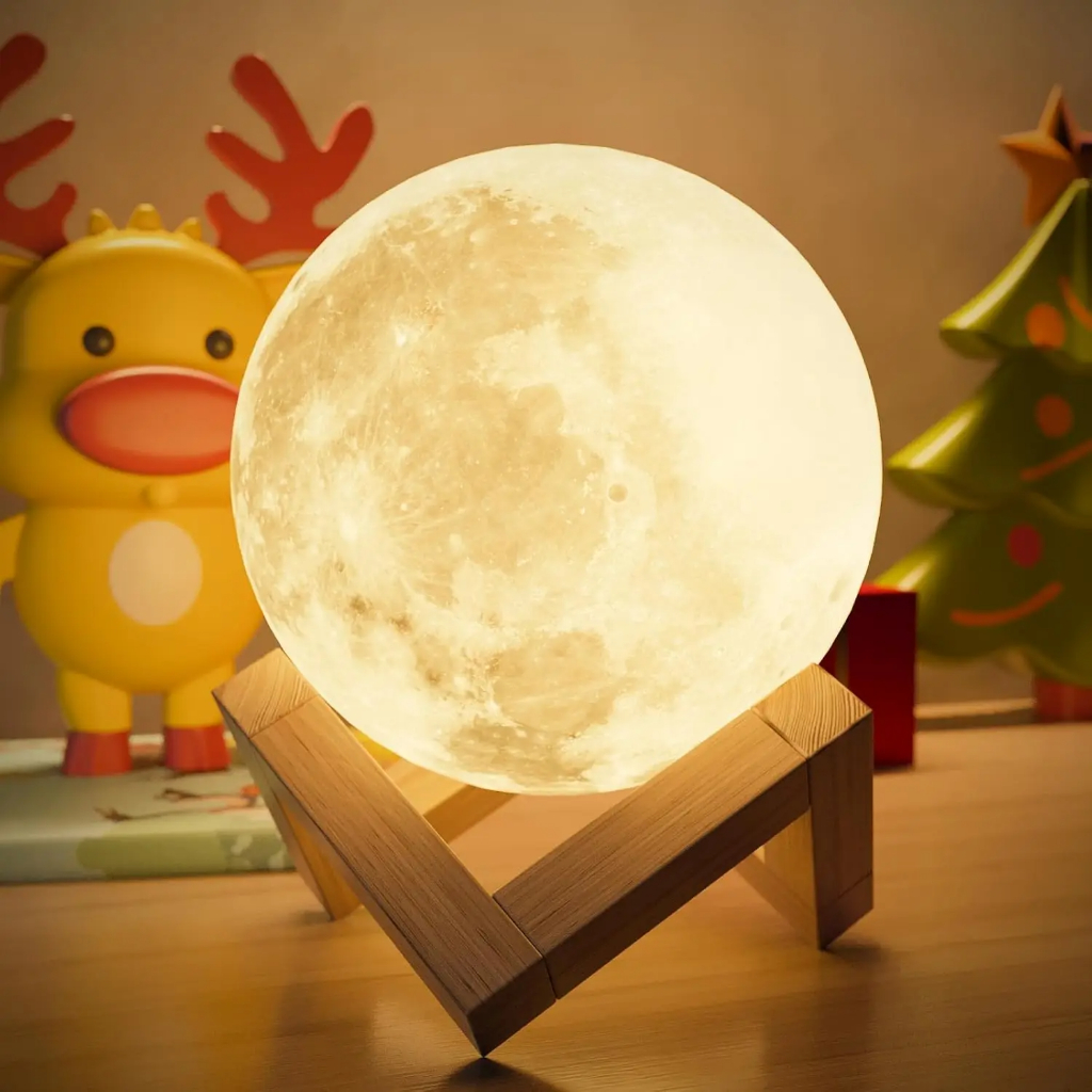 Luminária 3D Mini Lua Cheia Abajur Decorativo LED Com Suporte de Plástico Decoração Realista Para Quarto e Sala