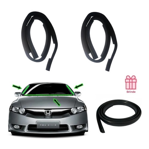Kit Borracha Arremate Superior Inferior e Acabamento Lateral Parabrisa Honda New Civic 2007 a 2011